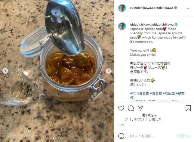 海老蔵さんは2021年7月14日、瓶に入った梅シロップの写真をインスタに投稿し、