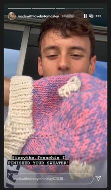 その後しばらくして、デイリー選手は再びストーリーを更新。「君のセーターを完成させたよ!」と、できあがった作品を披露した。