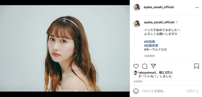 4人組アイドルグループ「ももいろクローバーZ」(ももクロ)の佐々木彩夏さん(25)が2021年8月2日、自身の退院とインスタグラム開設を報告した。