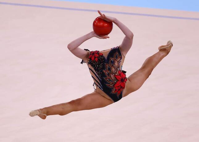 新体操個人総合では、カザフスタンのアリーナ・アジルハノワの写真が注目を集めた。2021年8月6日の予選競技中、英ロイター通信のカメラマンが撮影した。