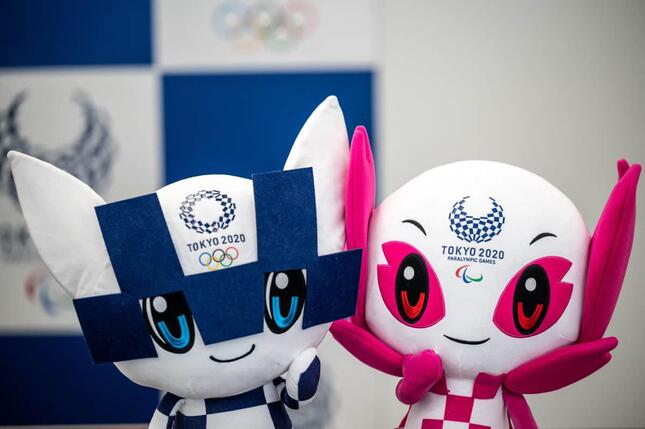 市松模様があしらわれたパラリンピックマスコット「ソメイティ」。大会への注目が高まるにつれ、五輪のマスコット「ミライトワ」とともにじわじわと人気が高まっている。