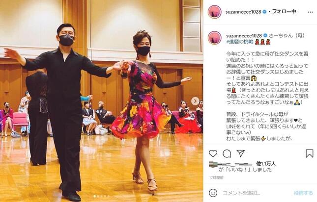 タレントのスザンヌさんが、母が社交ダンスコンテストに出場したことを明かした。