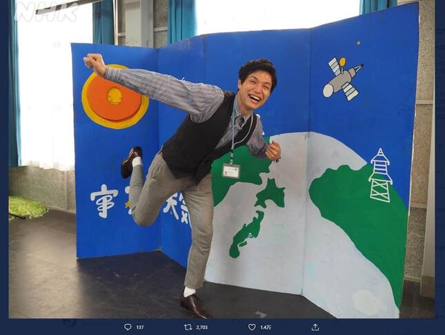 もう中学生さんは主人公の百音(清原果耶さん=19)が勤める気象情報会社「ウェザーエキスパーツ」で、新規事業のプレゼンをする社員役で登場。その姿を見た視聴者から「もう中学生さん、イケメンだった モデル体型並にスタイル良い」といった声が上がったのだ。