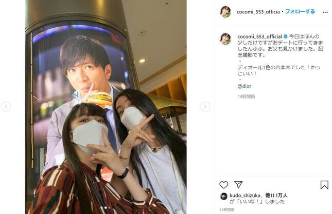 俳優の木村拓哉さんと歌手の工藤静香さんの長女でモデルのCocomiさんが2021年9月13日、、妹でモデルのKoki,さんと「おデート」する写真をインスタグラムで公開した。