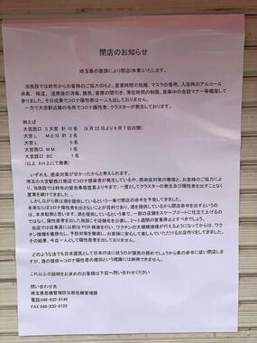 さいたま市内のJR大宮駅前にある居酒屋が、新型コロナウイルスの感染対策をめぐる埼玉県の要請に不満をつづった「閉店」の貼り紙を出し、ツイッターで反響を呼んでいる。