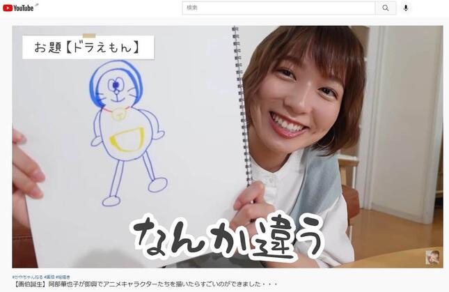 動画のタイトルは「【画伯誕生】阿部華也子が即興でアニメキャラクターたちを描いたらすごいのができました・・・」で、内容はその名の通り、阿部さんが複数のアニメキャラクターを描き、その出来栄えを披露するというもの。冒頭で阿部さんは、