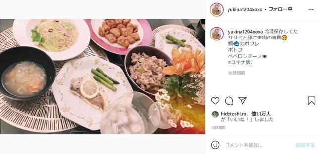 三幸選手は2021年10月12日にインスタグラムのストーリーズで、「#ユキナ飯。」とハッシュタグを付けた写真を投稿。写真には、魚料理やポトフ、ペペロンチーノや炒め物などがテーブルいっぱいに並べられていた。