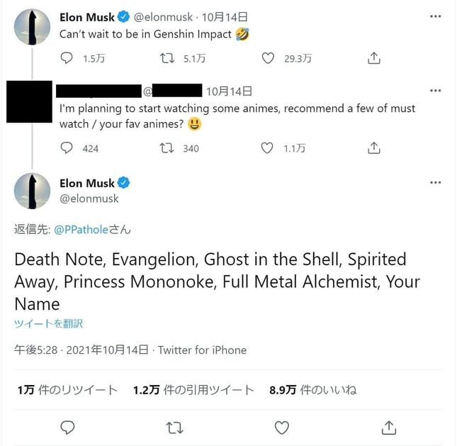 電気自動車メーカーのテスラ・モーターズや宇宙開発企業のスペースXのCEOを務めるイーロン・マスク氏が、好きなアニメもしくは見るべきアニメ7作品を、ツイッター上で紹介した。