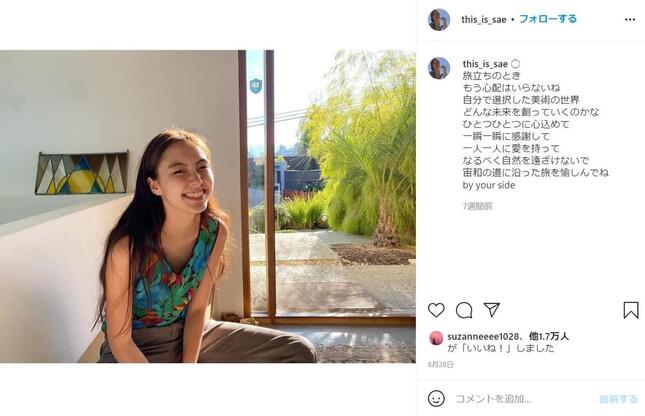 一色紗英さんのインスタグラム(@this_is_sae)より