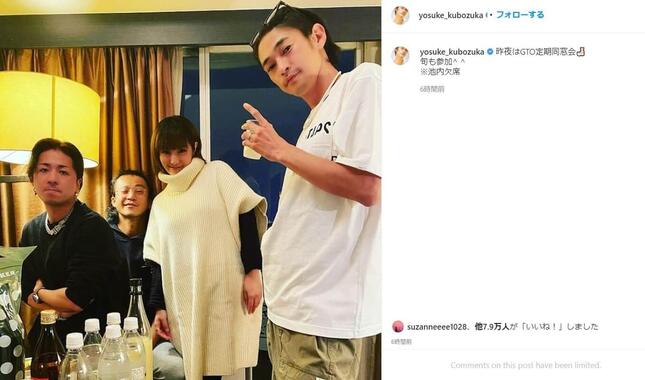 俳優の窪塚洋介さんが、1998年放送のドラマ「GTO」(フジテレビ系)で生徒役を務めたメンバーと同窓会を行ったと報告した。