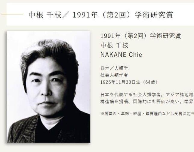 70年に東大東洋文化研究所教授、80年に同所長、95年には日本学士院会員。いずれも女性では初めてだった。とりわけ学者の最高峰とされる学士院は、それまでの200人余りの会員がすべて男性。中根氏のあと2014年に田代和生(かずい)・慶大名誉教授が選任されるまで唯一の女性会員だった。93年に文化功労者、2001年には文化勲章。73年から約10年間、国際人類学民族学連合の副会長を務めるなど、世界的な学会でも活躍した。