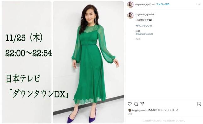 杉本彩さんのインスタグラムより