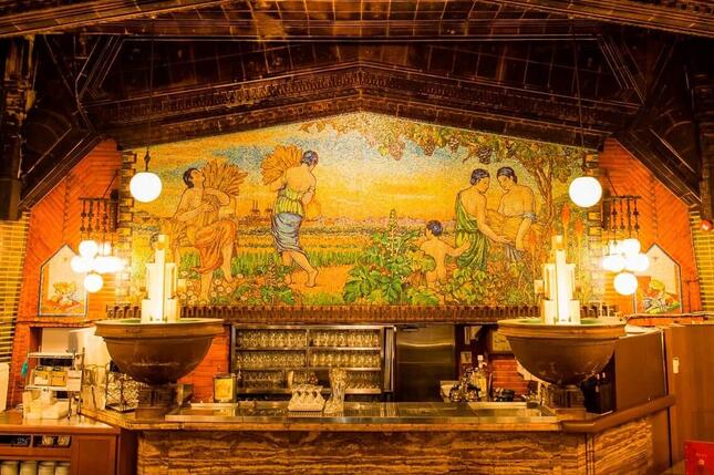 ビヤホールライオンは壁画や支柱、照明などは「豊穣と収穫」をコンセプトに、大麦やブドウをモチーフとした装飾が施されている。名物は店内正面にある大壁画。ビール麦の収穫に働く婦人たちを描いたガラスモザイクで、縦2.75メートル、横5.75メートルの大きさがある。