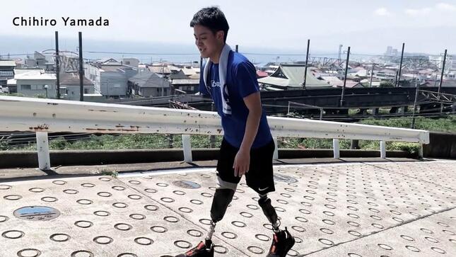 20歳の時に事故で手足を3本失った山田千紘さん(30)は外出時、両足に義足を履いて歩く。坂道も、階段も、自分の力で進んでいく。