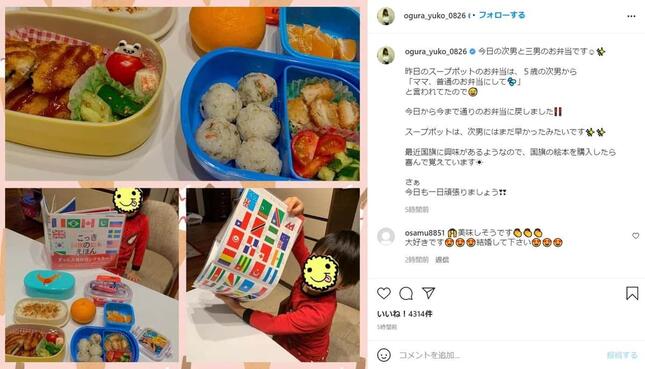 タレントの小倉優子さんが2021年12月7日、お弁当に次男からダメ出しを受けたことをインスタグラムで明かした。