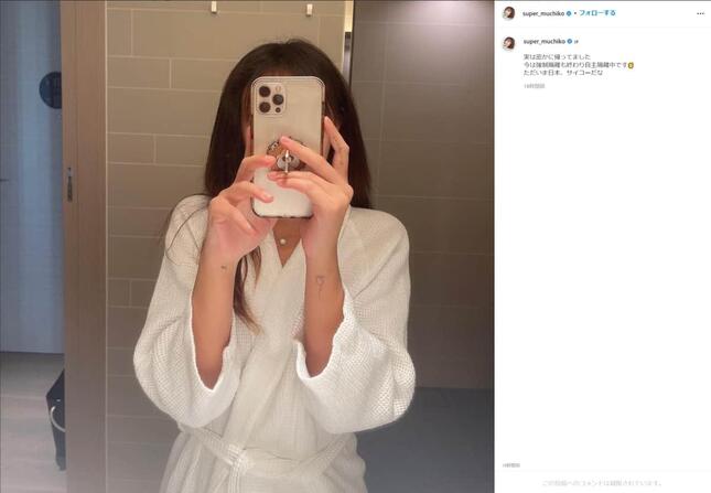 てんちむさんはインスタグラムに鏡越しに撮影した自撮り写真を投稿し、「実は密かに帰ってました」と無事帰国できていたことを報告。「今は強制隔離も終わり自主隔離中です」と明かし、「ただいま日本、サイコーだな」とつづった。
