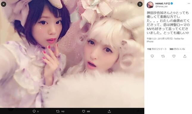 歌手でランジェリーショップのプロデュースも手がけるHANAEさんが2021年12月20日、ツイッターで、18日に急死した俳優・神田沙也加さんとの思い出を明かした。