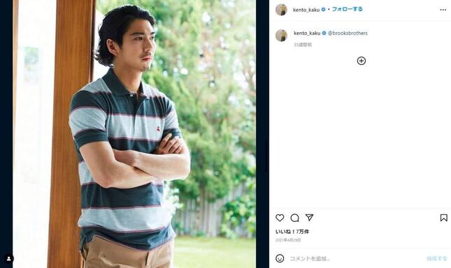 賀来賢人さんのインスタグラム(@kento_kaku)より