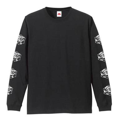 Tシャツは黒地で、白色の文字やイラストがプリントされている。背面には、筆で描かれたような「狂言」という文字が大きくデザインされており、左下にやや小さく「Ado」のロゴが添えられている。両袖の上面にはバラが4つ描かれた。