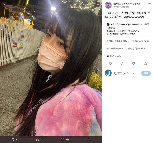 問題となったのは、メンバーの愛成来来(あなる・らいらい)さんと張李江(チャン・リィチャン)さんの交流会中の行動だ。グループの公式ツイッターが7日、