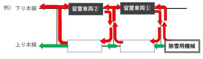 今回の豪雪では列車運行中に降雪が激しくなり、途中駅で運転を打ち切った車両はそのまま雪溜まりの中に埋もれてしまった。JR北海道の「お詫び」の説明では17駅に29編成が滞留しており、線路の雪自体は機械でも除雪できるが、車両周辺の雪は人力で除雪しなければならず、1編成ずつ救出し、開通している線路に移していくことを繰り返す手順になるという。