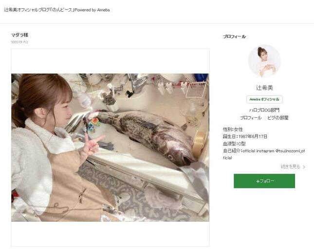 タレントの辻希美さんが、巨大なマダラを捌く様子をYouTube動画で披露した。
