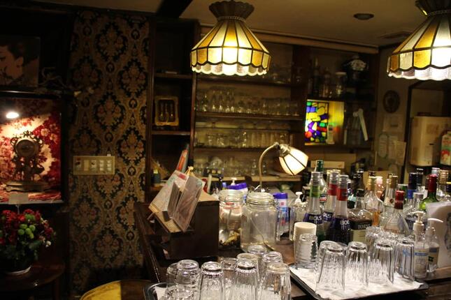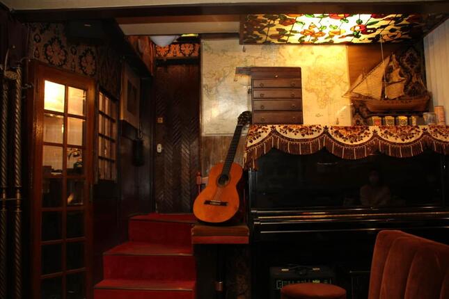東京メトロ丸ノ内線新宿御苑前駅・都営新宿線新宿三丁目駅から徒歩圏内の新宿カールモールに一歩足を踏み入れると、2層のフロアには時間を巻き戻したかのようなアンティークな空間が広がる。2階にはピアノも据え置かれ、こぢんまりとしながらも音楽を楽しめる空間だ。内装は壁紙を一度張り替えたほかは1970年の開業以来ほとんど変わっておらず、調度品・照明器具に至るまで昭和時代のものを使い続けてきた。