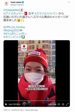 日本オリンピック委員会(JOC)公式ツイッターが2022年2月16日、アイスホッケー女子日本代表「スマイルジャパン」のメッセージ動画を公開した。動画には「大人の事情」でカットされた発言があった。