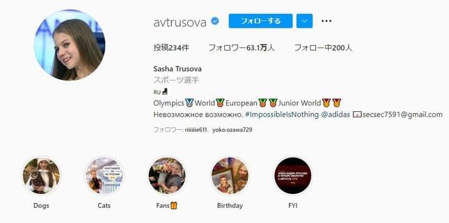北京五輪フィギュアスケート女子シングルで銀メダルを獲得したアレクサンドラ・トゥルソワ(ROC)のインスタグラムのプロフィールに注目が集まっている。