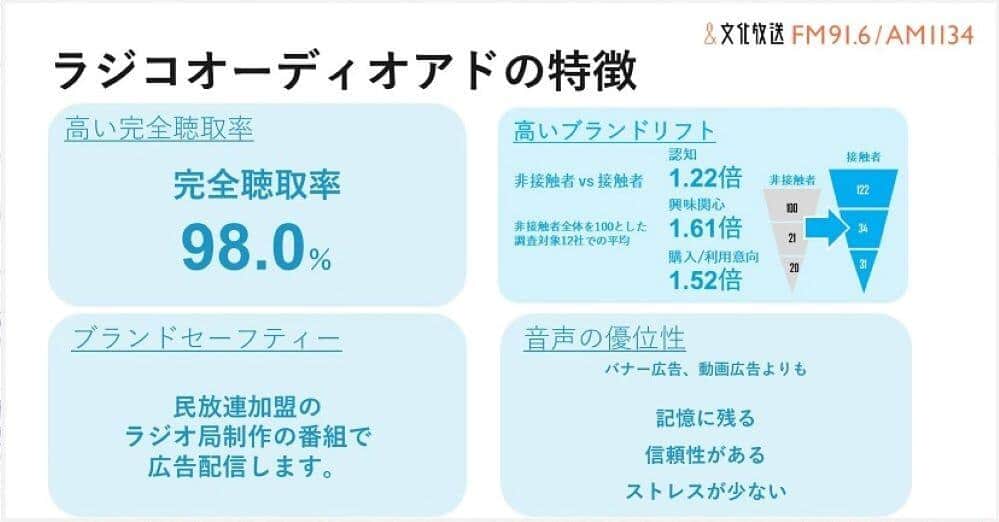 小平氏によると、広告主が出稿する上で、音声コンテンツ単体での効果より、むしろ他のデジタル広告と組み合わせたときの影響を知りたい、といった要望が多いという。推測ではなく、聴取実態に基づいたターゲットにリーチできるため、効果を可視化しやすく、結果にあわせてプロモーション戦略を調整できる点もまた、優位性のひとつだ。