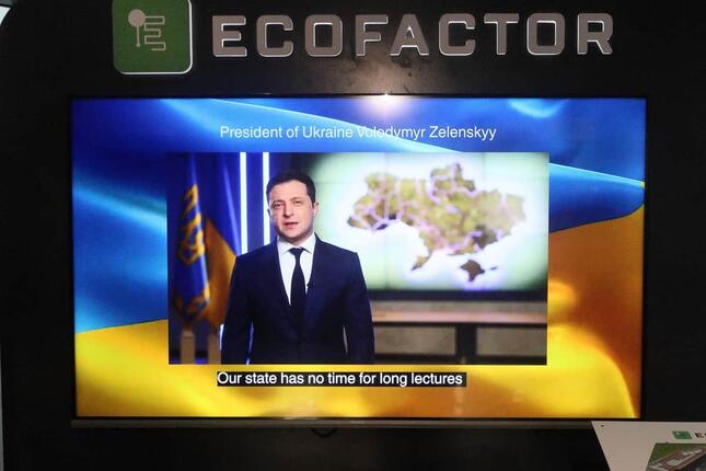 ゼレンスキー大統領はビデオメッセージで、「私の背後には、国際的に定義された国境によるウクライナの地図がある。そして、それはどんな声明が出ようと変わらないだろう」と訴えている -