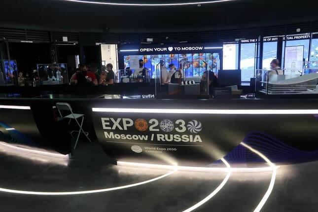 ロシア館では2030年の万博招致をアピールする展示が目立つ -