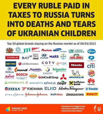 一方で、様々な理由からロシアに残る企業もあり、ウクライナ外務省は2022年3月10日、フェイスブックを更新し、「ロシアに滞在することを決めた企業のリストを公開しています」と告げた。