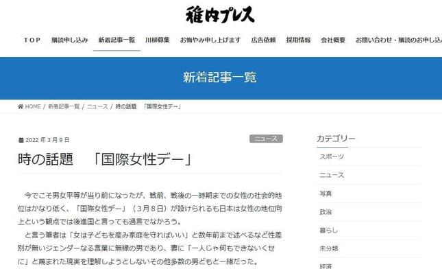 地域紙「稚内プレス」は2022年3月12日、国際女性デーに合わせて配信した記事が「多大なる不快感を与えた」として、読者に謝罪した。