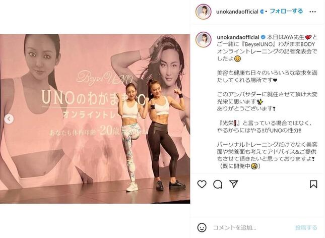 神田さんはこの事業のアンバサダーを務める。「就任させて頂け大変光栄に思います」「『光栄!』と言っている場合ではなく、やるからにはやる!!がUNOの性分!!」「パーソナルトレーニングだけでなく美容面や栄養面も考えてアドバイス&ご提供もさせて頂きたいと思っておりますよ!」などのメッセージを添えている。
