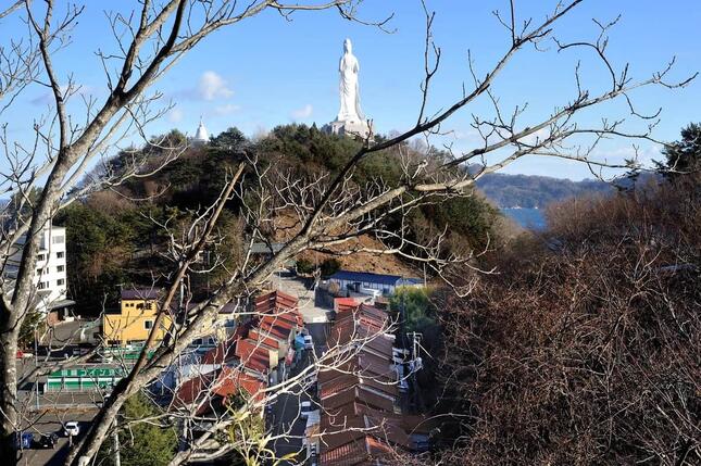 岩手県釜石市中心部から車で約10分。釜石大観音は、地元の観光名所のひとつだ。駐車場で車を降り、大観音へ向かう途中に商店街「仲見世通り」がある。ただ、営業中の店は少ない。