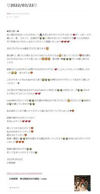 最後に小林さんは一連のブログを振り返り、「誤解が解けた方がいてくれて本当によかった」「救ってくれてありがとう 私のSOSをキャッチして愛を与えてくれて皆様へ濃密に愛をお届けする機会を作ってくださり 本当にありがとうございました」とつづっていた。