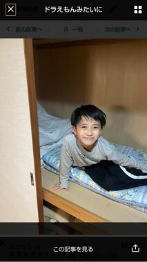 「ドラえもんみたいに」とのタイトルのエントリーで海老蔵さんは、布団を敷いた押し入れの中に納まってカメラ目線を決める勸玄くんの写真をアップしつつ、「今日は押し入れで寝てみたいと、、」と一言。続けて、「え、、いいけど、本気か?!」とツッコむと、