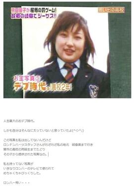 ブログによるとこの写真は、「ロンドンハーツスタッフさんがわざわざ私の地元岐阜県まで行き 関市の高校の同級生までたどり その子から提供された写真」と過去にバラエティ番組「ロンドンハーツ」(テレビ朝日系)で紹介されたとのこと。「私も持ってない写真がいきなりロンハーのテレビで使われてめちゃくちゃびっくりした」と当時の驚きを振り返っていた。