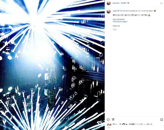 浜崎さんといえば3月27日のインスタグラムで「The first spring break for my lil one has begun」(子どもにとって初めての春休みが始まりました)、「貴方の先に続く道が光に満ち溢れています様に」として照明の中で撮影した写真をアップ。浜崎さんは子どもと手をつないでおり、注目されていた。