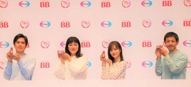 アイドルグループ・乃木坂46の山下美月さんらが出演する「チョコラBB」新CMの発表会が2022年4月7日に行われ、出演者の山下さん・板谷由夏さん・濱津隆之さん・細田佳央太さんによるトークが行われた。