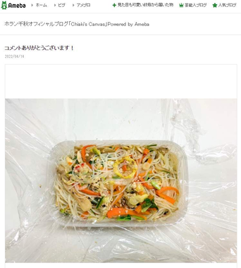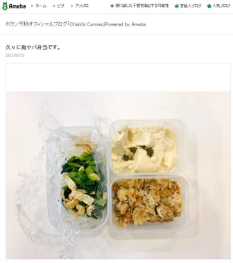 ホランさんは以前から、タッパーにラップを敷いて無造作におかずを入れた手作り弁当をブログで公開しており、SNSなどで目にする彩りや食材豊かな弁当と一線を画すビジュアルが定期的に注目を集めてきた。8日のブログでは、2種類の焼きビーフンのみという弁当を披露し「お弁当にルールなどないのですから 自信を持ってありのままのお弁当を持っていきましょう」と新生活で弁当を作る人々にエールを送っていた。