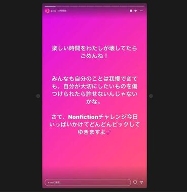 また、次の投稿で浜崎さんは、「楽しい時間をわたしが壊してたらごめんね!」とコメント。一方、「みんなも自分のことは我慢できても、自分が大切にしたいものを傷つけられたら許せないんじゃないかな」と呼びかけていた。