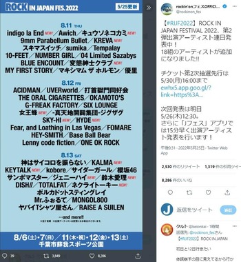 「ゲスの極み乙女。」など5つのロックバンドで活動するミュージシャンの川谷絵音さんが2022年5月25日、追加18組の発表があったロックフェス「ROCK IN JAPAN FESTIVAL 2022(RIJ)」のスケジュールについて、まさかの出演日程に驚くようなツイートを投稿した。