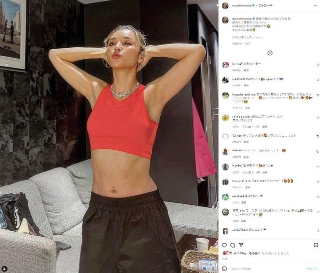 鈴木さんはインスタグラムで「楽屋で鏡ばっか見てた昨日」とつづりつつ、頭の後ろで腕を組んだ写真を公開。お腹を大きく露出したピンクのスポーツウェアを着用しており、唇を突き出した顔をしている。