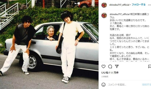 俳優の大竹しのぶさん(64)が2022年6月9日、27歳の頃に撮影したという家族写真をインスタグラムで披露した。