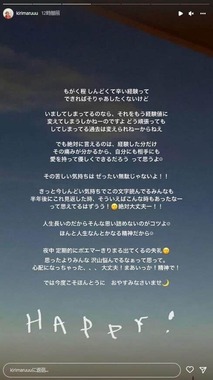 きりまるさんはインスタグラムのストーリーで、YouTubeの登録者数が80万人に迫っていることに「わぁぁいつのまに」と驚き。一方、「実は体調崩して、看護師続けられなくなって休職して パニック障がいも悪化して退職して数ヶ月間ニートして もう生きるのが辛すぎて、毎日死にたいって ひたすらひたすら思いながら生きてた」と看護師を辞めた経緯について告白した。