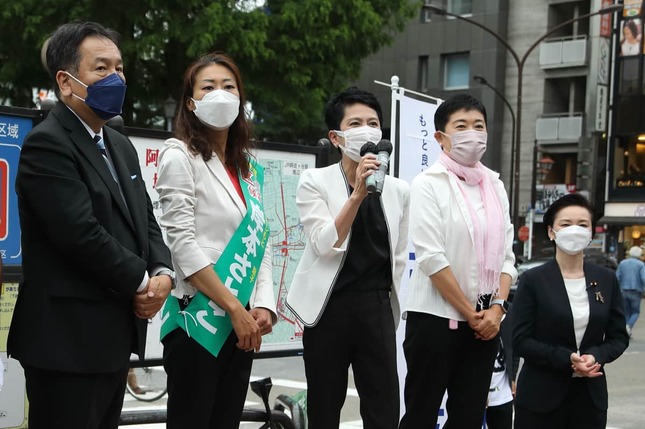 この日の街頭演説では、辻元清美前副代表、蓮舫氏、枝野幸男前代表の重鎮3人が応援に臨んだ。辻元氏は21年の衆院選で落選し、今回の参院選では比例区から出馬する。ただ、演説の内容の大半が「この杉並は、(衆院選で石原伸晃氏を破った)吉田晴美さんを生み出した市民革命の町」といった区長選の応援。長さは4分30秒程度だった。