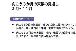 気象庁のサイトによると、同庁では、天気予報は1週間先まで出しているが、それより先になると移動性の低気圧や高気圧を予測したり局地的な天候を予測したりすることが困難になる。このため、向こう1か月間や3か月間は、季節予報として、確率表現を用いて地域の平均的な天候を予測している。