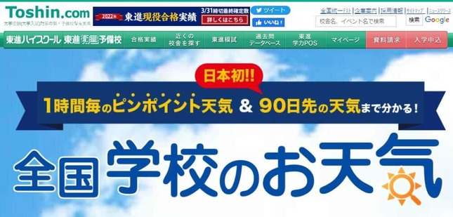 大手予備校「東進ハイスクール」が「日本初!!90日先の天気まで分かる!」とうたって公式サイト上で公開している天気予報について、気象予報士らからネット上でツッコミが相次いでいる。
